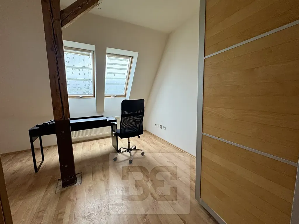 Všechny tři ložnice Vás překvapí svojí velikostí, příjemným pohledem ze střešních oken a majestátními dřevěný sloup s trámy, které jsou pro tento byt tak typický.