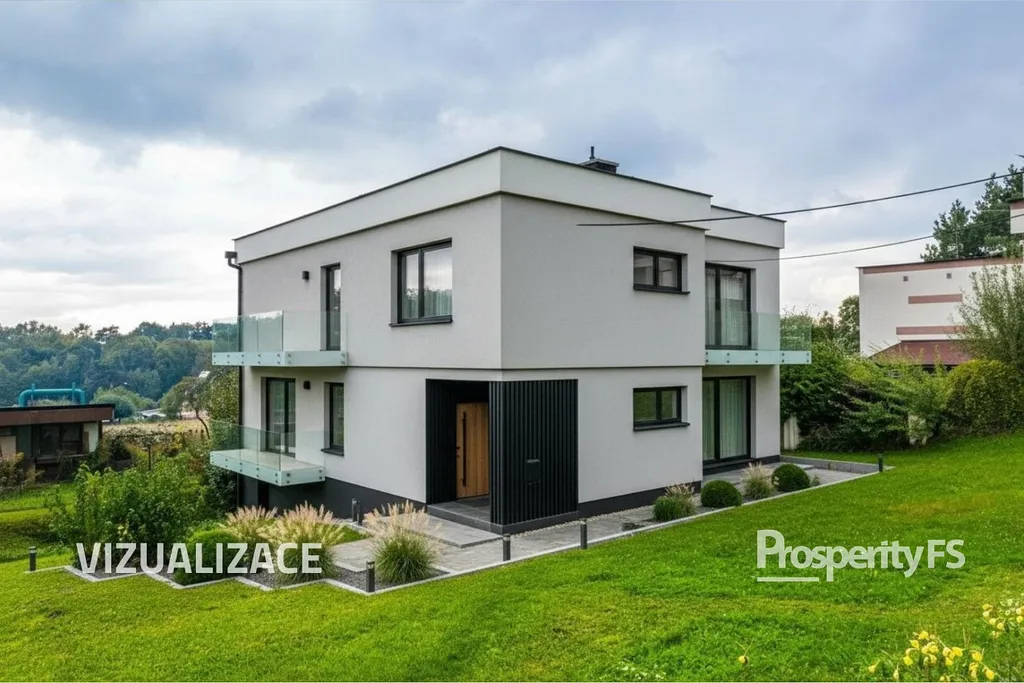 Pro představu, přikládám fotografie vizualizací exteriéru a interiéru domu.