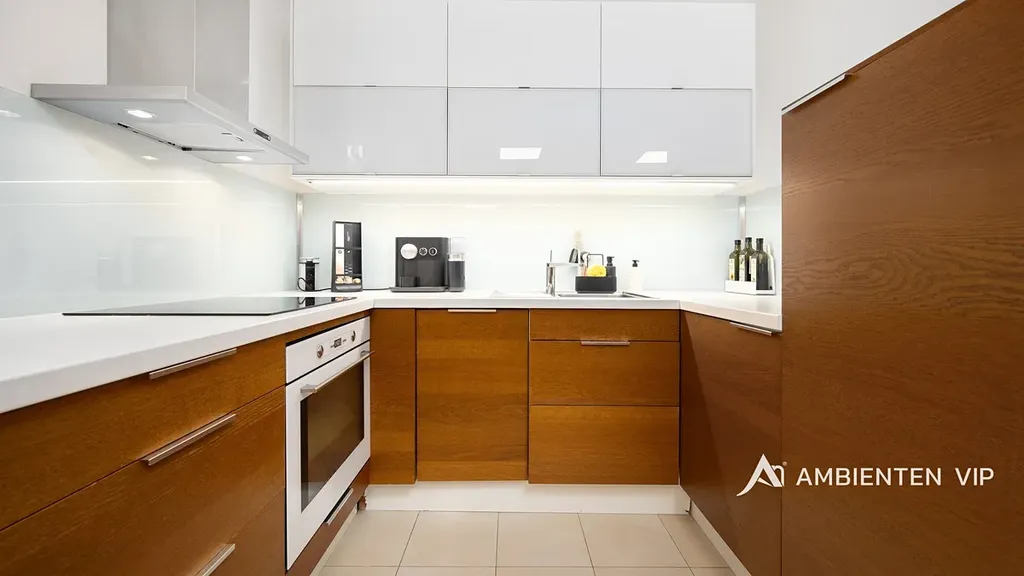 Při vstupu do bytu vcházíte do vstupní chodby, která je vybavená vestavěnými skříněmi a umožňuje vstup do všech místností v bytě. Obývací prostor s kuchyňským koutem má přímý vstup na lodžii (4,9 m²) orientovanou do ulice. Kuchyně je vybavena vestavnými spotřebiči – lednice, mrazák, elektrická trouba, indukční deska s digestoří a nabízí mnoho úložného prostoru. Dále se zde nachází dva samostatné pokoje, které mají přímý vstup na lodžii (8,3 m²) orientovanou do vnitrobloku. Koupelna disponuje umyvadlem a sprchovým koutem. Toaleta je umístěna samostatně.