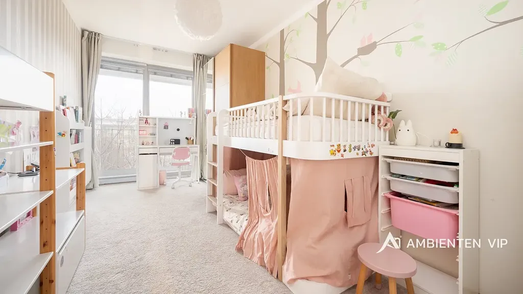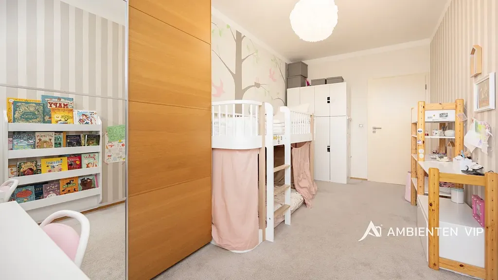 K bytu náleží parkovací stání v garáži domu a sklepní jednotka. Sklepní jednotka je již zahrnuta v ceně. Parkovací stání lze odkoupit za 600.00,— Kč. Ve vnitrobloku domu se nachází soukromí park s dětským hřištěm, který mohou využívat pouze rezidenti domu.
