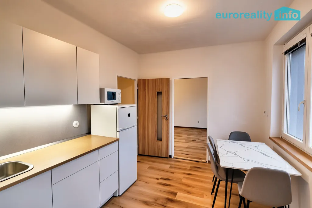 Byt je po rekonstrukci a je vytápěn elektrickým nástěnným topným panelem. Součástí je kvalitní nová kuchyňská linka s moderními vestavnými elektrospotřebiči, nové podlahy, zděná koupelna se sprchovým koutem a WC.