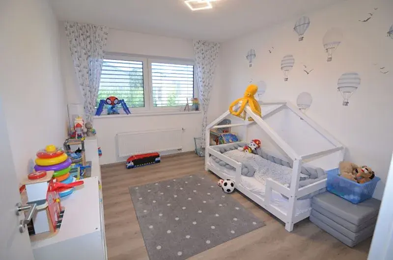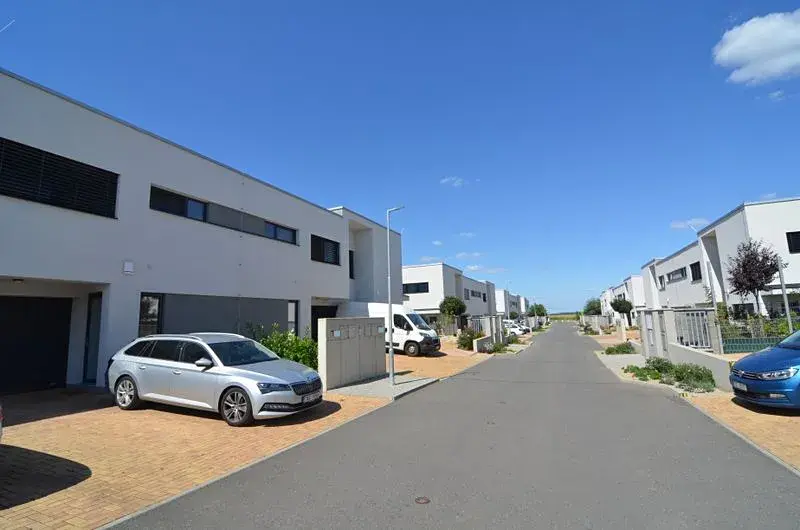 Ve výhradním zastoupení si Vám dovolujeme nabídnout velmi dobře řešenou, patrovou novostavbu řadového rodinného domu 4+kk, se zastřešenou terasou, okrasnou zahradou, garáží a 2x parkovací stání, s užitnou plochu 153m2, v obci Vestec, v nově vzniklé rezidenci "Vestec v zahradách", Praha západ. Jedná se o nemovitost, která je velmi vkusně a nadstandardně vybavená, ve všech pokojích klimatizace, zabezpečení Jablotron. Dispozice v přízemí: obývací pokoj propojený s kuchyňským a jídelním koutem, kuchyňská linka zhotovena truhlářem na míru se spotřebiči (indukční varná deska s vnitřním odsáváním, el. trouba a mikrovlnka (Bosch), vestavná lednice s mrazákem, myčka nádobí), pracovní deska z technického kamene Corian v kombinaci se sklem. Obývací pokoj s posuvnými balkonovými dveřmi se vstupem na zastřešenou terasu 22 m2,(hliník s mléčným polykarbonátem a s elektricky ovládaným zastíněním) a do zahrady a s orientací jihozápadní, toaleta s umyvadlem, šatna, komora a vchod do garáže. V patře jsou tří pokoje, v ložnici nábytek vč. vestavné skříně vyroben na míru, orientace pokojů JZ a SV. Koupelna s vanou a sprchovým koutem, toaleta, bidet 2x umyvadlo, zvlášť toaleta s umyvadlem, technická místnost s plynovým kondenzačním kotlem a zásobníkem teplé vody, prostorem pro pračku. Schodiště do patra obložené vinylem a zábradlí nerez a sklo. Na podlaze vinyl a dlažba. Dveře Sapeli. Okna plastová, trojskla a u všech oken a dveří předokenní, elektricky ovládané rolety, sítě proti hmyzu. Na zahradě nádrž (8m3) na dešťovou vodu. Bydlení nejen v dobré dopravní dostupnosti, v pěší dostupnosti stanice Bus na Metro Kačerov a Budějovická /cca 20 min./ nebo na Metro Opatov /15 min/, sjezd a nájezd na Pražský okruh s propojením na D1, D5 a Letiště /25 min/, ale především v blízkosti přírody a s možností sportovního vyžití: asfaltové cyklostezky s propojením do Průhonického parku, veřejné venkovní posilovny, několik dětských hřišť, fotbalové hřiště, prostor v obci pro koncerty a různé akce. Občanská vybavenost MŠ, ZŠ zajištění dopravy pro školáky, Obecní úřad, pošta, obchodní centrum, hypermarket Albert, Billa, JYSK, lékárna, bankomat, restaurace, cukrárna, kavárna. Hypotéku vám rádi pomůžeme vyřídit.