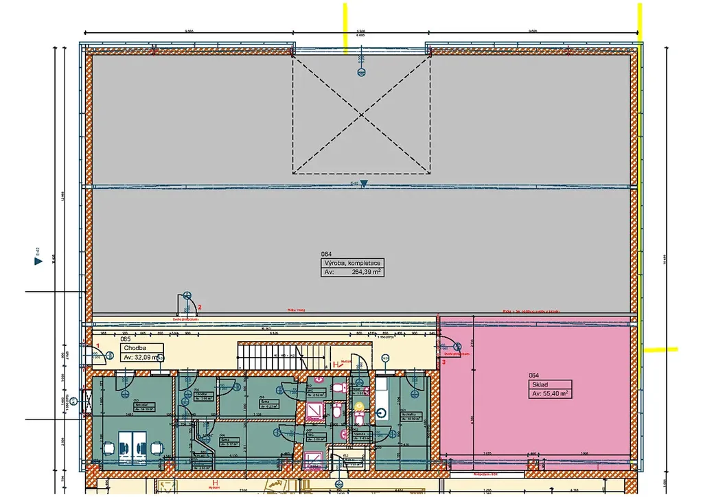 Nabízíme k pronájmu skladovou/výrobní halu o rozměru 504 m2. Výška haly je 7-8 metrů, vedou do ní průmyslová vrata dostatečně velké i pro kamion, podlahy jsou z litého betonu, ideální pro paletové vozíky. Hala je zateplená, má zabudovaný zabezpečovací systém, nové rozvody elektřiny a možnost připojení vysokorychlostního internetu. Před halou je prostor na nájezd kamionu. Další částí haly jsou také kancelářské prostory v patře, pro potřebnou administrativu a zázemí firmy. Součástí jsou také šatny, sociální zázemí a zařízená kuchyňka. Možnost pronájmu také parkovacích míst přímo před objektem. Služby jsou rozpočítány následovně: Elektřina-jistič (3x40A) – 2 081 Kč/měsíc; záloha na el. – 2 000 Kč/měsíc; Teplo-paušál – 4 900 Kč/měsíc; Voda-paušál – 700 Kč/měsíc. Zabezpečovací systém je napojen na centralizovaný pult ochrany a součástí je kamerový systém. Vyhrazená parkovací místa pro osobní automobily před halou jsou za 500 kč/měsíc/auto. Doporučujeme osobní prohlídku, v případě zájmu či dotazů nás neváhejte kontaktovat.