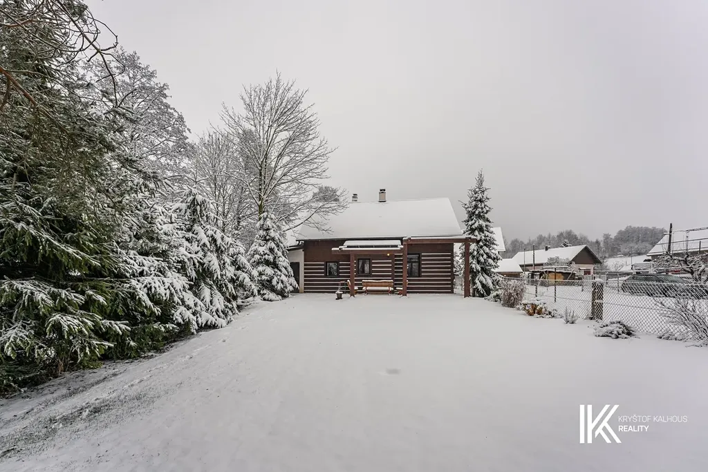 Na pozemku o celkové rozloze 739 m² stojí tato neobyčejná chalupa, která prošla v roce 2023 rozsáhlou rekonstrukcí. Zvenku působí jako klasická roubenka, ale za krásnou fasádou z techniky zkamenělého dřeva se skrývá moderní interiér. Trámy byly zachovány a ponechány přiznané, aby dům neztratil svůj charakter, původní okna dávají stavbě přirozenou atmosféru a nová plechová střecha zajišťuje dlouhou životnost. Dům je cihlový, pevný a připravený na dlouhá léta používání.