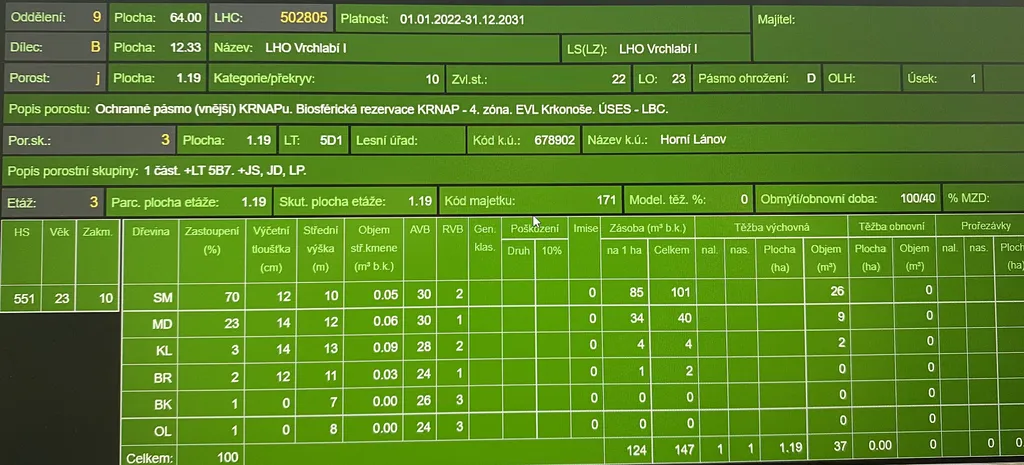 Prodej lesního pozemku a pozemku vedeného jako ostatní plocha v katastrálním území Horní Lánov, obec Lánov, okr. Trutnov. Jedná se o pozemek p.č. 3066 o výměře 11.269 m² (lesní pozemek) a o pozemek p.č. 3057 o výměře 4.009 m² (ostatní plocha). Celková výměra pozemků činí 15.278 m². Pozemky jsou situovány na rovině až mírně svažitém terénu. Pozemek ostatní plochy je veden jako ostatní komunikace a slouží jako přístupová cesta k lesnímu pozemku. Na pozemku se nachází stromořadí lemující nezpevněnou cestu. Na ploše lesního pozemku se nachází lesní porost smrku, modřínu, javoru, buku, olše a břízy ve věku 26 let. Lesní porost je udržovaný, zdravý a bez těžebního zásahu. Lze zde provést výchovnou těžbu v objemu 37 m3. Oba pozemky jsou dobře přístupné. Foto je aktuální. List vlastnictví č. 748. Informace na tel. nebo e-mailu.