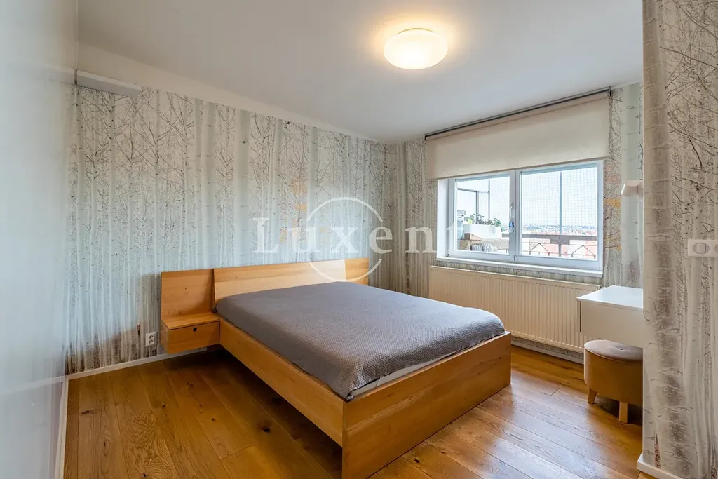 Nabízíme k dlouhodobému pronájmu výjimečný byt 4+kk o podlahové ploše 120 m², situovaný v nejvyšším patře moderní nástavby činžovního cihlového domu s výtahem v oblíbené pražské čtvrti Dejvice. K bytu náleží také prostorná terasa 18 m² orientovaná do klidného vnitrobloku, která zajišťuje naprosté soukromí a příjemné venkovní zázemí.
