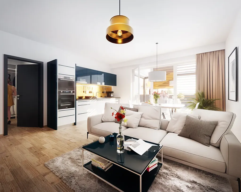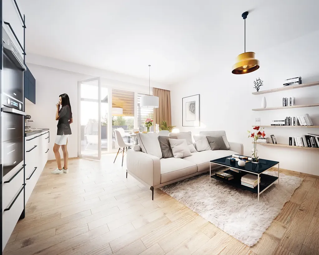 Byty jsou standardně vybaveny podlahovým vytápěním a kvalitním vinylovým povrchem, což zajišťuje příjemný tepelný komfort a nerušené dispozice bez radiátorů. Vybrané byty mají také rekuperační jednotky pro cirkulaci čerstvého vzduchu, kontrolu vlhkosti a snížení hluku zvenčí.