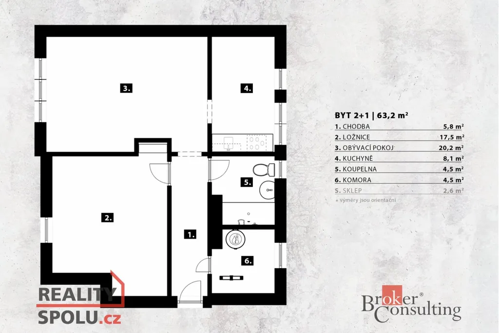 Díky umístění v nejvyšším patře zde panuje klid, soukromí a dostatek denního světla. K bytu náleží sklep o výměře cca 2,6 m², který prakticky doplňuje úložné možnosti bytu.