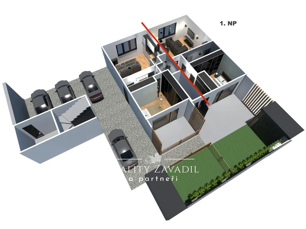 možnost parkování na pozemku (až 2 vozy), projektově řešená varianta krytých stání / dvojgaráže