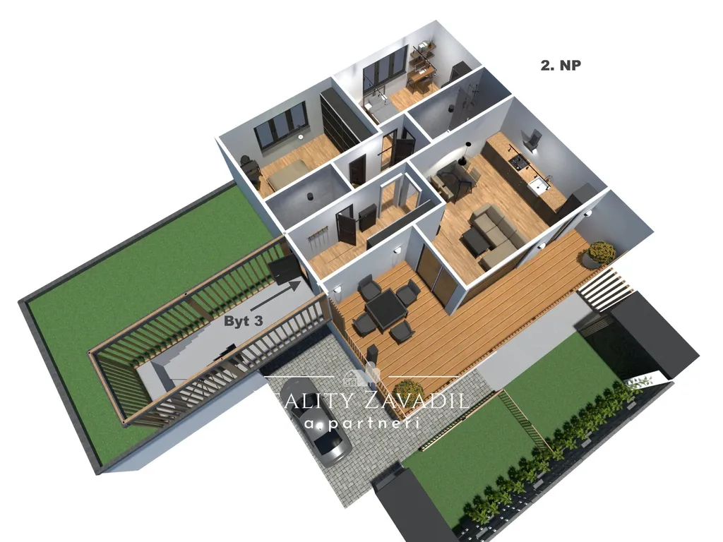 Velkou výhodou této nabídky je schválený projekt se stavebním povolením na tři bytové jednotky. Díky tomu nový vlastník: