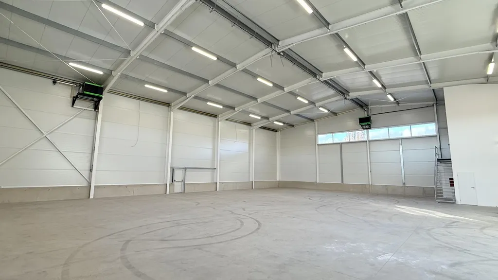 Vjezd do haly zajišťují sekční průmyslová vrata o velikosti 4,5 x 5m na výšku, Vnitřní prostory vytápěny plynem, čerpadlo, and #34;Sahary and #34;. Po objektu úsporné LED osvětlení.