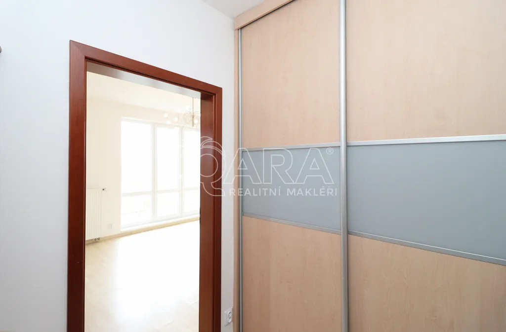 Při vstupu do bytu naleznete po pravé straně úložný prostor - prostornou šatní skříň.