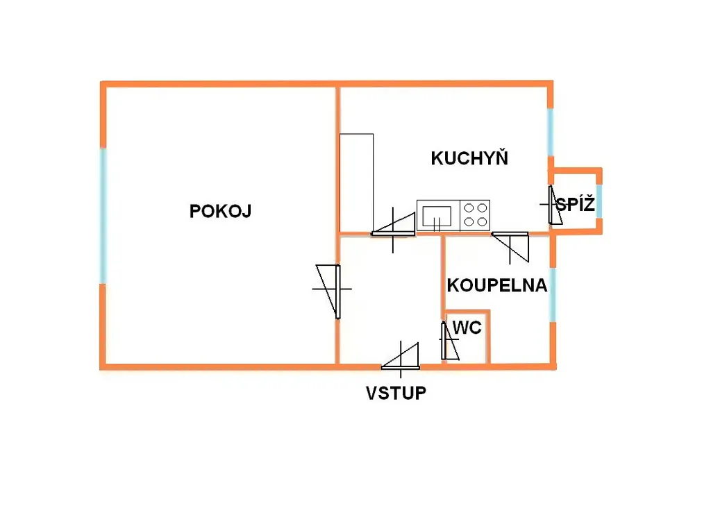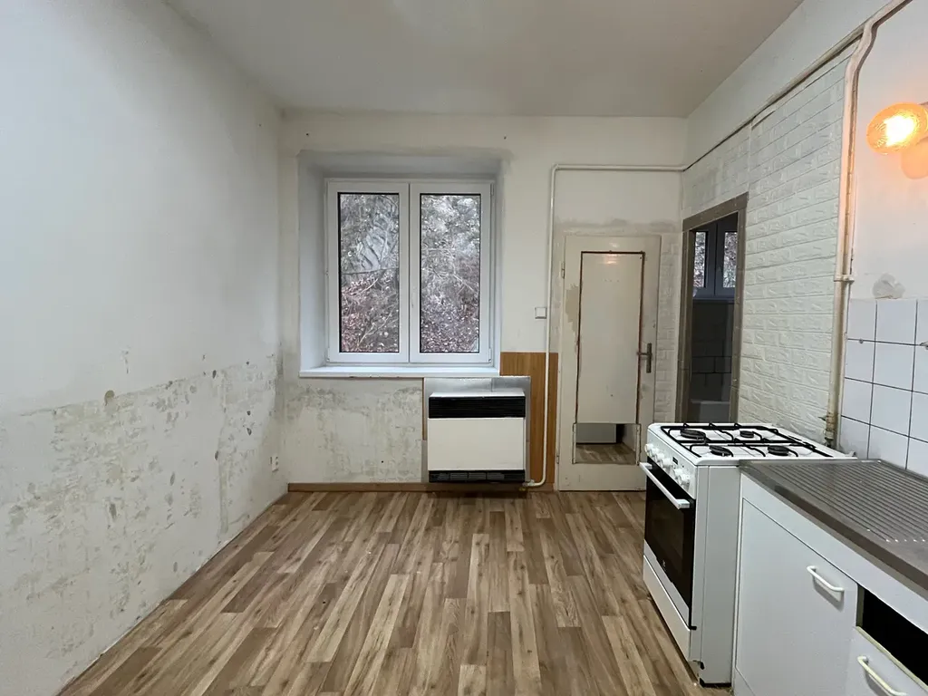 Byt se skládá z jednoho většího pokoje o výměře cca 25m2, z obytné kuchyně, koupelny, spíže a WC. Vybavení bytu: kuchyňská linka, dřez, sporák, pračka, lednička, sušička.