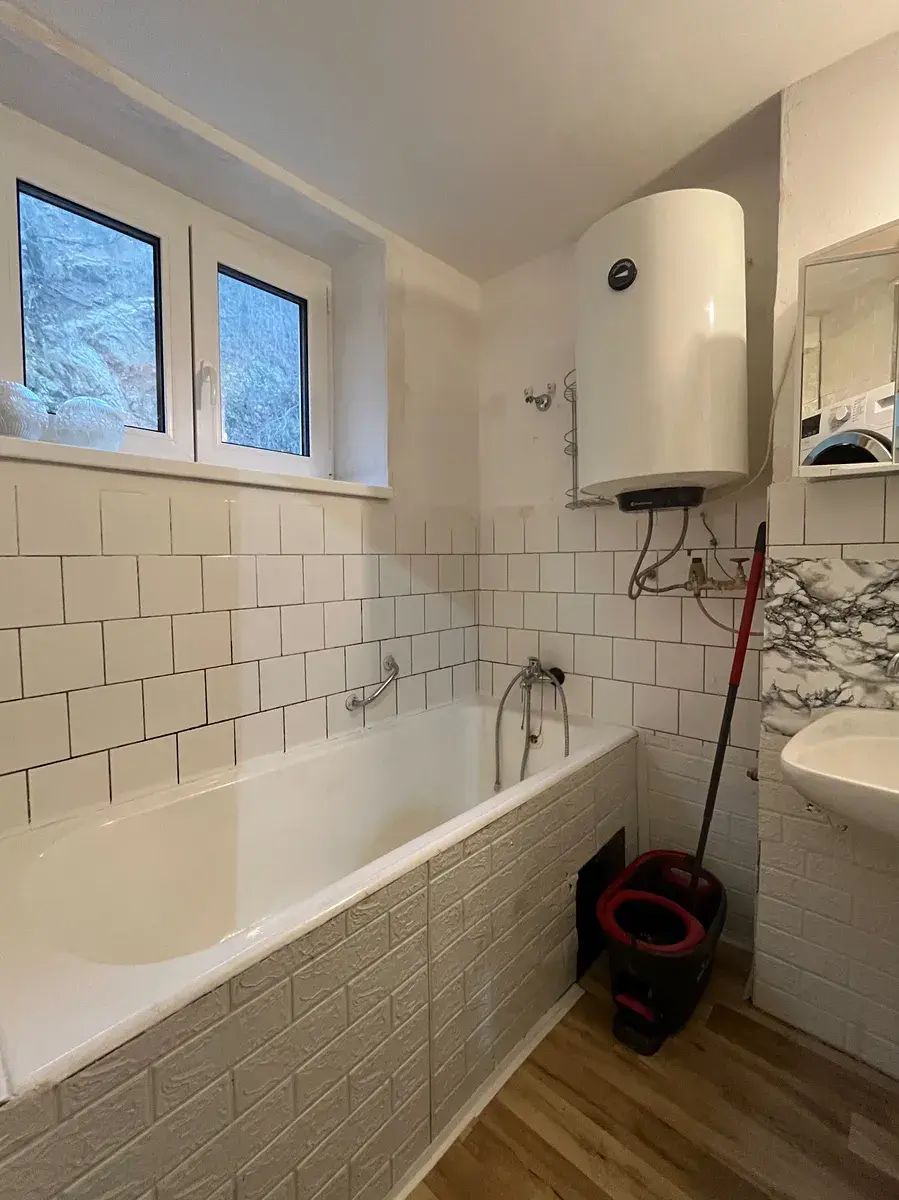 Topení: plynové wafky v dobrém stavu, ohřev vody elektrickým bojlerem.