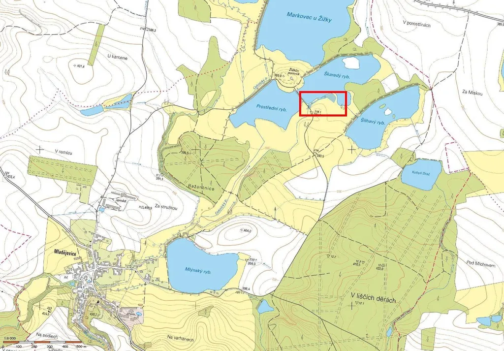 Pozemky leží v klidném venkovském prostředí u rybníka, s přírodní scenérií a historickými body zájmu.
