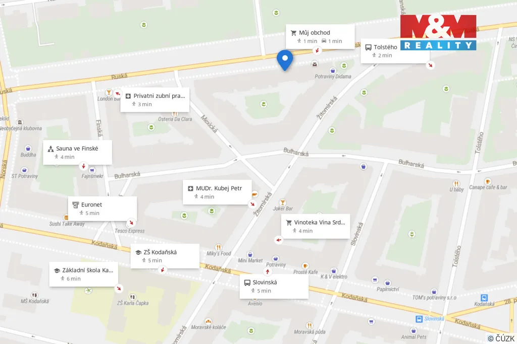 Být je kompletně zařízen. Stav nemovitosti je dobrý, což umožňuje okamžité nastěhování bez nutnosti dalších investic. Okolí je známo svoji klidnou a příjemnou atmosférou a bohatým kulturním životem. Blízkost parku Havlíčkové sady je obrovskou výhodou. Bydleni v ul. Ruska je ideální volbou pro ty, kteří hledají dobře dostupnou lokalitu s šarmem a klidnou atmosférou. Tramvaji jste za několik málo minut na st. m. Náměšti míru anebo Jiřího z Poděbrad. Bezproblémové parkování na modré zóně.