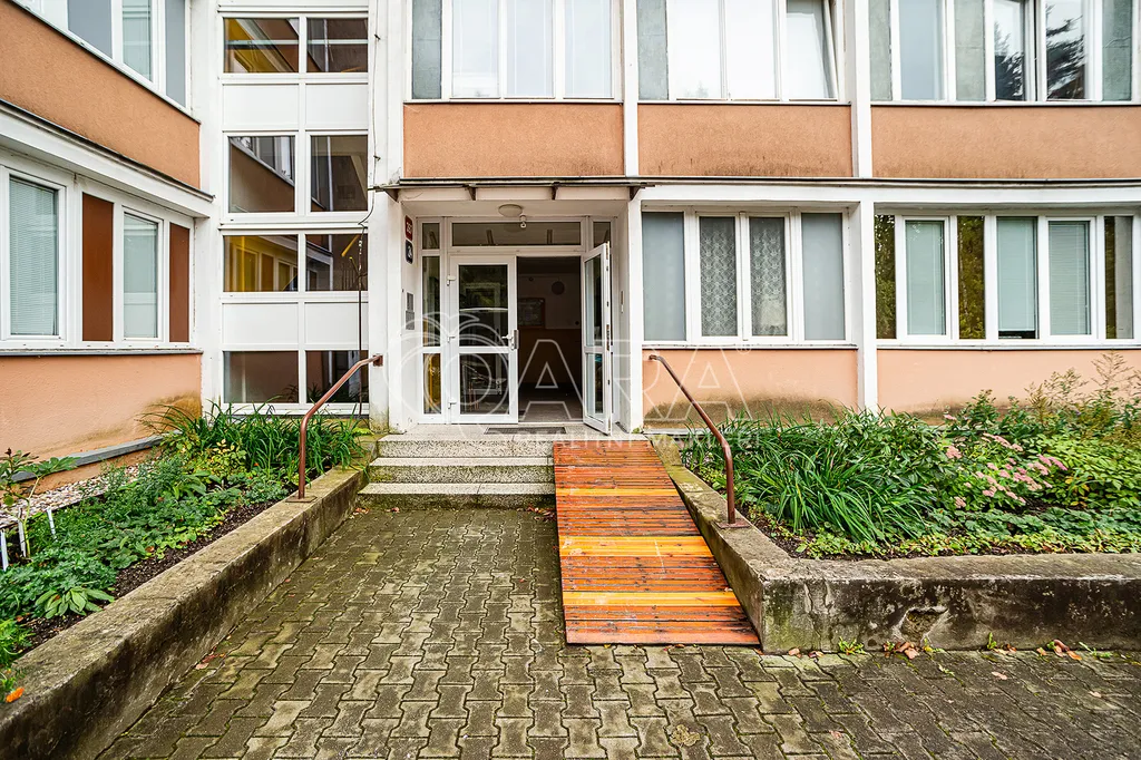 Společné prostory domu jsou zrekonstruované, chodby a schodiště díky mnoha oknům působí vzdušně. Jedná se o slušnou a klidnou adresu s dobrou dopravní dostupností do centra. Zastávka autobusu MHD (Školní) je hned u domu, stejně jako Střední škola gastronomie a služeb, která pro veřejnost provozuje restauraci, cukrárnu/lahůdky, kadeřnictví, krejčovství a kosmetiku.