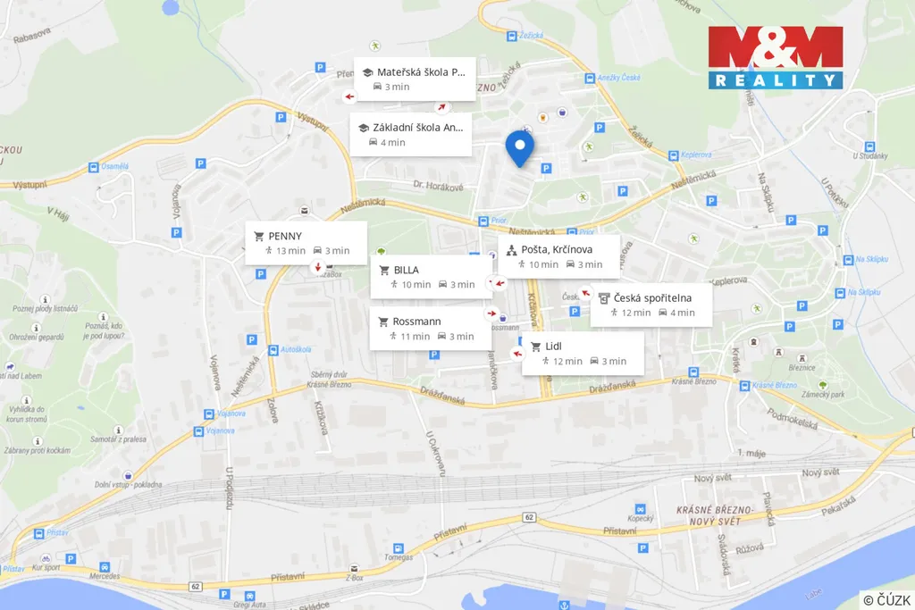 Anežky České, Ústí nad Labem, Krásné Březno