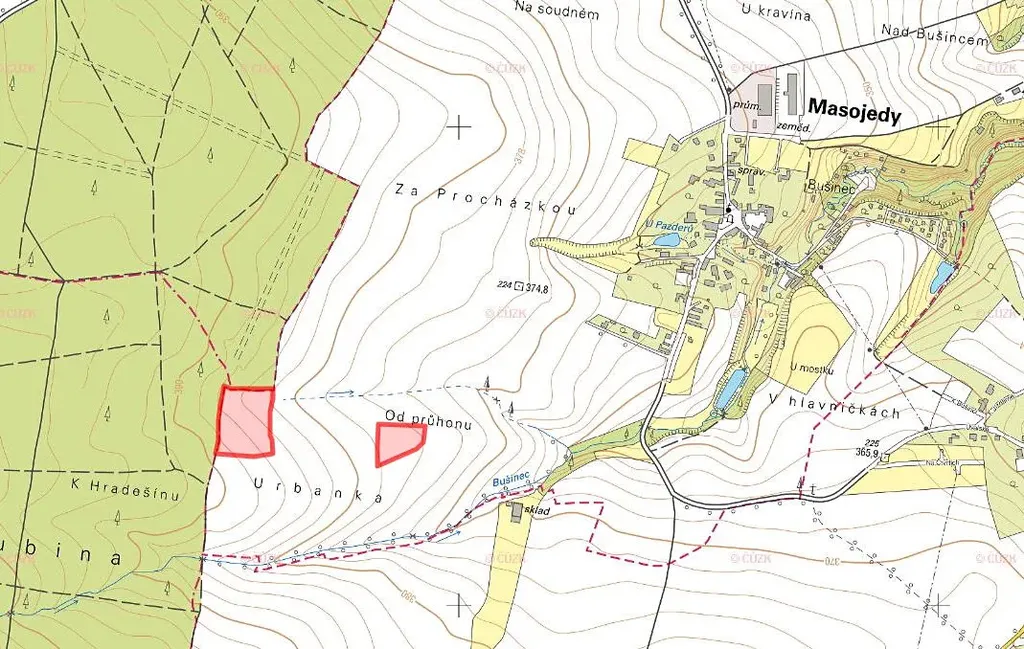 Předmětem prodeje jsou dvě parcely zapsané na LV 924 v KÚ Masojedy: