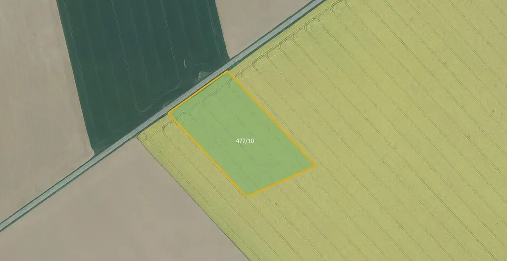 Parcela je zapsána pod číslem 477/10 na listu vlastnictví 301. Nachází v zemědělsky aktivní oblasti a vyznačuje se nadstandardní kvalitou půdy – bonita dle BPEJ dosahuje hodnoty 19,13 Kč, což představuje velmi úrodnou půdu vhodnou pro intenzivní zemědělské využití. Položena je v rovině u zpevněné komunikace. Pravidelný tvar je ideální pro rostlinnou výrobu.