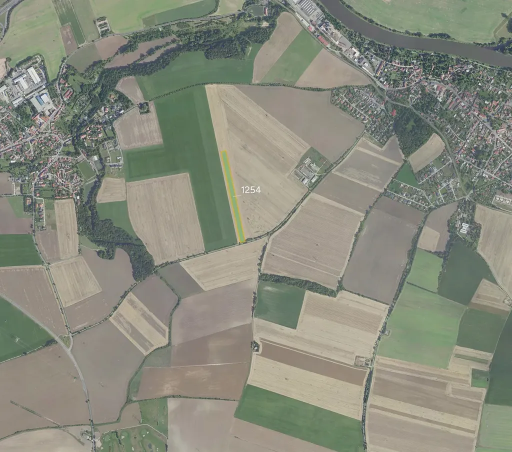 Leží v rovinatém zemědělském bloku přímo u cesty, s pravidelným tvarem, což umožňuje pohodlný příjezd techniky a efektivní obhospodařování bez ztrátových okrajů.