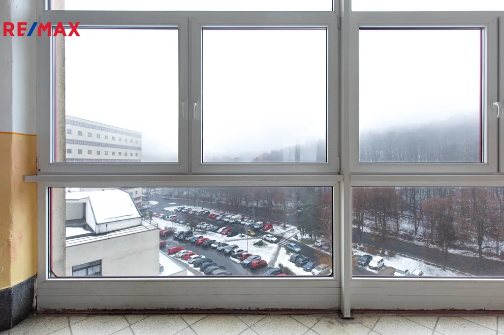 Byt se nachází v 7. patře na Koldůmu č. p. 1581, domu se správou SBD Krušnohor a díky vysokému podlaží nabízí příjemné světlo i hezký výhled. Součástí bytu je západně orientovaná lodžie, ideální pro večerní odpočinek u západu slunce.