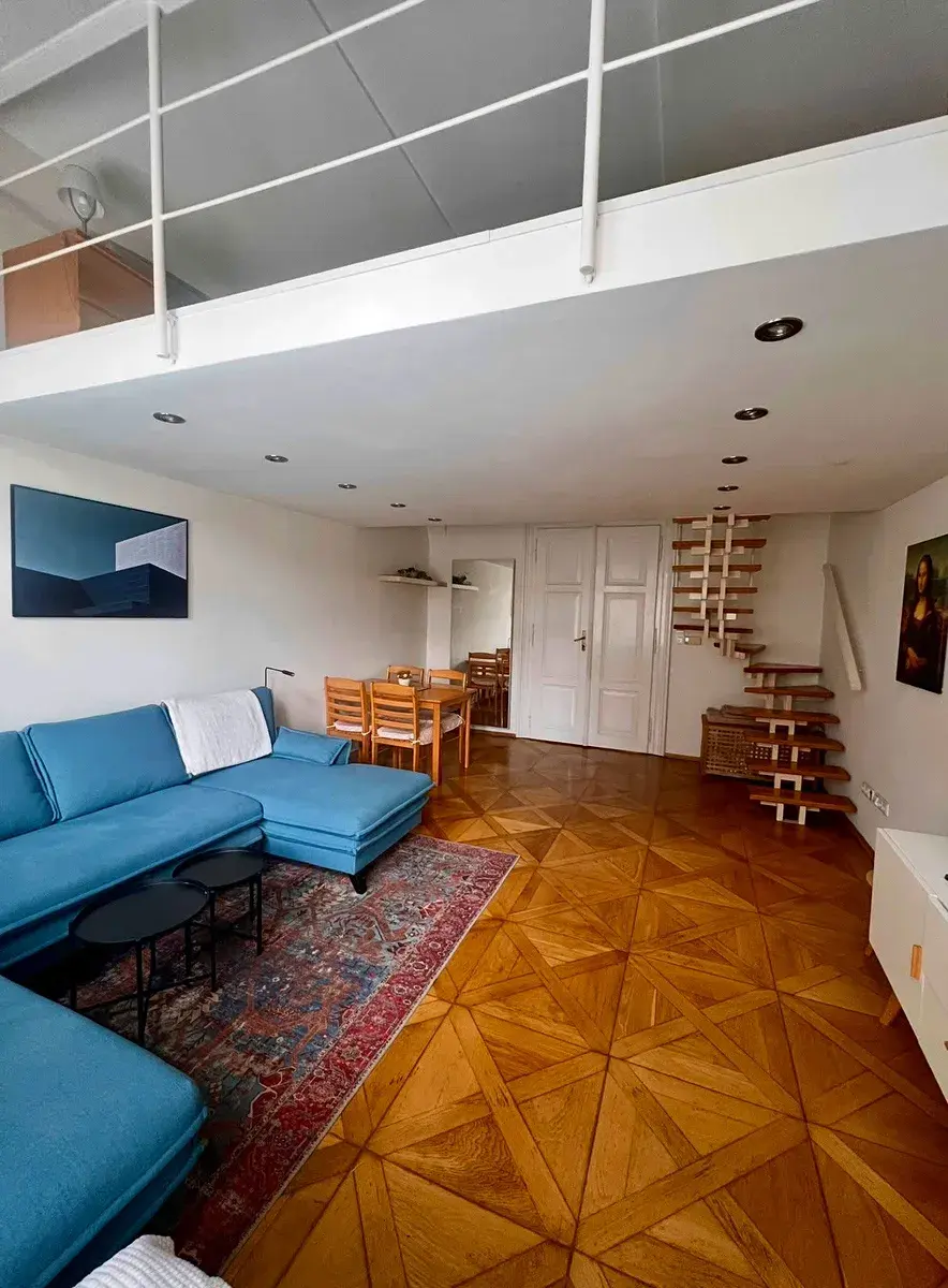 Nabízíme k pronájmu útulný mezonetový byt 1+1 o rozloze 44 m², umístěný v 1. patře domu s výtahem na adrese Na Valentince, Praha 5 – Smíchov.