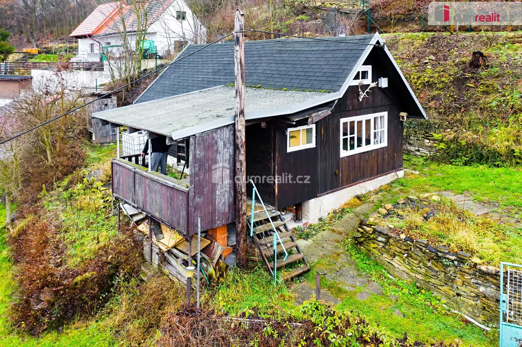 Dumrealit.cz Vám zprostředkuje prodej rekreační chaty na vlastním, oploceném pozemku o velikosti 306m² v obci Liběchov, okr. Mělník. Chata (zastavěná plocha činí 50m²) má číslo popisné, na katastru nemovitostí vedená jako rodinný dům. Podle současného způsobu využívání se jedná o nepodsklepenou rekreační chatu o dispozici 2+kk, s užitným podkrovím. Chata stojí na betonové desce, svislé nosné konstrukce jsou dřevěné, krovy dřevěné, trámové. Střecha je sedlová, část zakrývající verandu pultová. Jako krytina jsou použity šindele. Objekt není zateplen, vytápění je zabezpečeno kamny na tuhá paliva. Do chaty je zavedena elektřina, obecní voda, odpadní vody jsou svedeny do obecní kanalizace. Sociální zázemí v chatě není dořešeno. K příslušenství patří sklípek ve skále, okrasná zahrada s ovocnými stromy a vybudovaným místem pro posezení u zahradního grilu. Z pozemku je krásný výhled na Liběchov, řeku Labe, či vzdálenou horu Říp. Více informací požadujte v RK. Ev. číslo: 653304.
