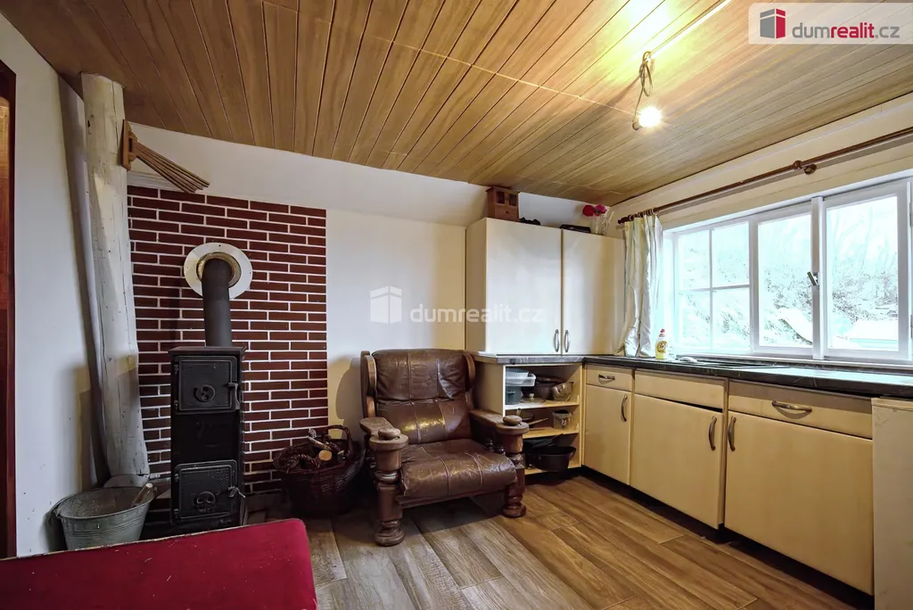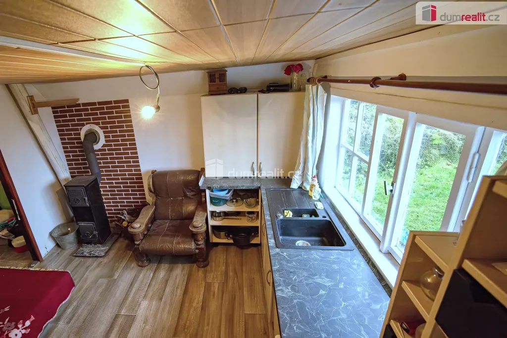 Dumrealit.cz Vám zprostředkuje prodej rekreační chaty na vlastním, oploceném pozemku o velikosti 512m² v obci Liběchov, okr. Mělník. Chata (zastavěná plocha činí 50m²) má číslo popisné, na katastru nemovitostí vedená jako rodinný dům. Podle současného způsobu využívání se jedná o nepodsklepenou rekreační chatu o dispozici 2+kk, s užitným podkrovím. Chata stojí na betonové desce, svislé nosné konstrukce jsou dřevěné, krovy dřevěné, trámové. Střecha je sedlová, část zakrývající verandu pultová. Jako krytina jsou použity šindele. Objekt není zateplen, vytápění je zabezpečeno kamny na tuhá paliva. Do chaty je zavedena elektřina, obecní voda, odpadní vody jsou svedeny do obecní kanalizace. Sociální zázemí v chatě není dořešeno. K příslušenství patří sklípek ve skále, okrasná zahrada s ovocnými stromy a vybudovaným místem pro posezení u zahradního grilu. Z pozemku je krásný výhled na Liběchov, řeku Labe, či vzdálenou horu Říp. Více informací požadujte v RK. Ev. číslo: 653304.
