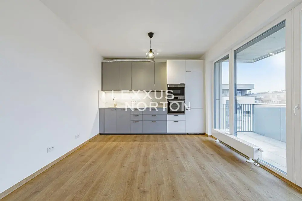 Byt o dispozici 2+kk disponuje dvěma balkony o rozloze 9 m2 a 7.5 m2, které výrazně rozšiřují obytný prostor. V obývacím pokoji propojeném s kuchyní je vybudovaný zcela nový kuchyňský kout plně vybavený všemi potřebnými spotřebiči. V chodbě je k dispozici prostorná vestavěná skříň, která doplňuje úložný prostor v bytě. V prostorné koupelně je k dispozici vana se skleněnou zástěnou. Na všech oknech jsou také nainstalované venkovní žaluzie. Součástí rezidenčního projektu je venkovní posilovna, kavárna a tři dětská hřiště vybavená trampolínami. V areálu se nyní také buduje park. Pro komfort se v domě nachází také kočárkárna, kolárna, stojany na koloběžky a elektrické nabíječky pro elektromobily.