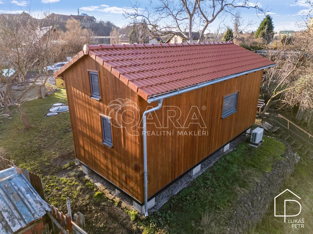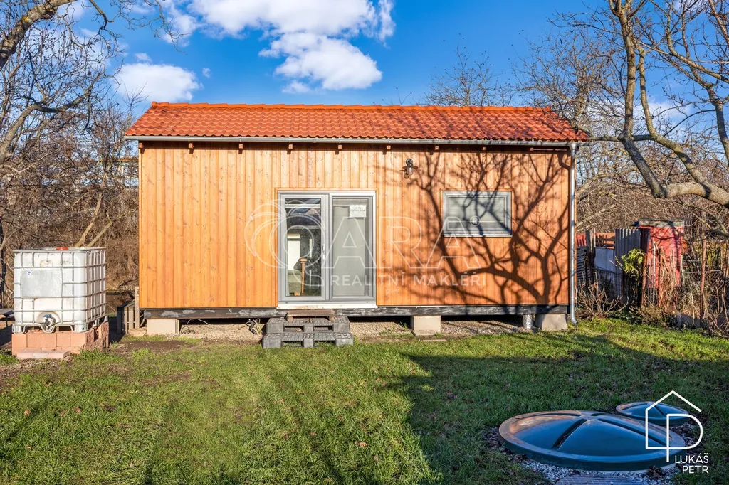 Celoroční tiny house s mezipatrem, který není řešený jako sezónní chatka, ale jako poctivě postavená stavba s normální skladbou konstrukcí a technikou, která dává smysl i pro dlouhodobé užívání. Dům má délku 8 metrů, zastavěnou plochu 28 m² a díky mezipatru vychází užitná plocha zhruba na 32 m². Půdorys je navržený účelně a interiér je využitý do posledního metru. Dům je starý zhruba jeden rok a je ve stavu téměř novostavby.