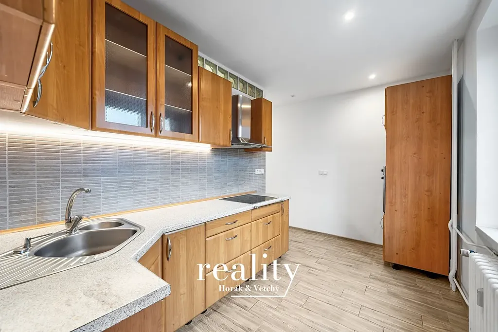 Na konci chodby vpravo je vstup do kuchyně, která je vybavena varnou deskou a odsávačem par.