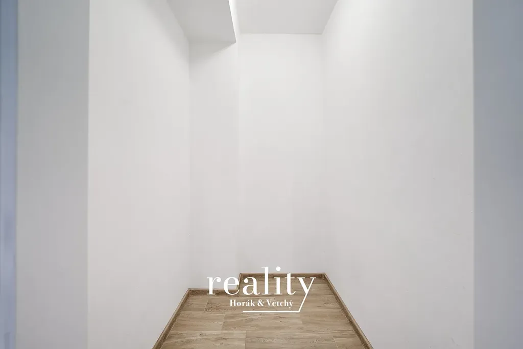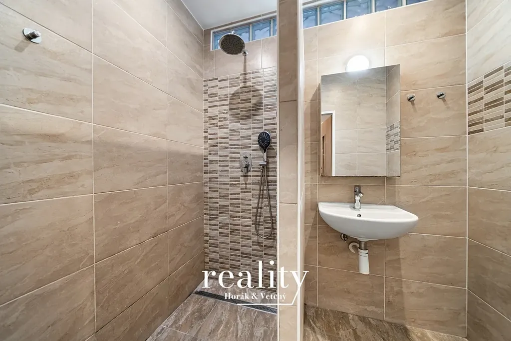 Při vstupu je chodba, kde se na pravé straně nachází samostatné WC a dále koupelna (se sprchou a přípojkou na pračku).