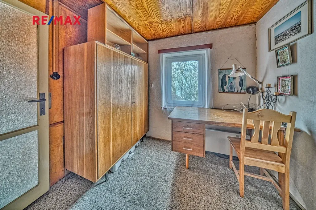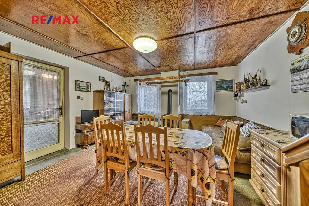Dovolujeme si Vám nabídnout k prodeji rodinný dům využívaný k rekreaci, nacházející se v klidné obci Vilémovice u Ledče nad Sázavou. Cihlový, dvoupodlažní dům je situován na pozemku o celkové výměře 956 m², který je celý oplocený a poskytuje dostatek soukromí. Nemovitost je vhodná nejen k rekreačnímu využití, ale také k trvalému bydlení, případně ke kombinaci obou možností. Dům je v původním stavu a je vhodný k rekonstrukci dle vlastních představ, ať už pro rekreační využití, nebo pro plnohodnotné trvalé bydlení, s možností vytvořit si příjemné zázemí v klidném prostředí obklopeném přírodou. V přízemí se nachází pokoj s kuchyňským koutem o výměře 22,97 m², další pokoj o velikosti 8,42 m², koupelna s vanou a samostatné WC s umyvadlem. V patře jsou tři samostatné pokoje o výměrách 17,68 m², 12,53 m² a 8,58 m², které nabízejí dostatek prostoru pro rodinné bydlení. Nemovitost je částečně podsklepená, sklep má přibližně 21 m². Dům je vybaven plastovými okny, je zde zavedena elektřina 230/400 V a ohřev vody je řešen bojlerem. Vytápění domu je zajištěno plynovými kamny typu WAW umístěnými v každém patře a dále kamny na pevná paliva (komín není vyvložkovaný). Odpad je řešen septikem o objemu cca 1–2 m³. Na pozemku se nachází samostatně stojící garáž a zahradní domek. Součástí nemovitosti je udržovaná, rovinatá zahrada o výměře 878 m², převážně travnatá, s několika stromy a keři, ideální pro odpočinek i rodinné aktivity. Obec Vilémovice nabízí klidné bydlení v přírodě s dobrou dostupností do Ledče nad Sázavou, kde je kompletní občanská vybavenost, a je dostupná jak autem, tak autobusovou dopravou. Nemovitost představuje zajímavou příležitost pro ty, kteří hledají místo pro bydlení či rekreaci s možností rekonstrukce dle vlastních potřeb.
