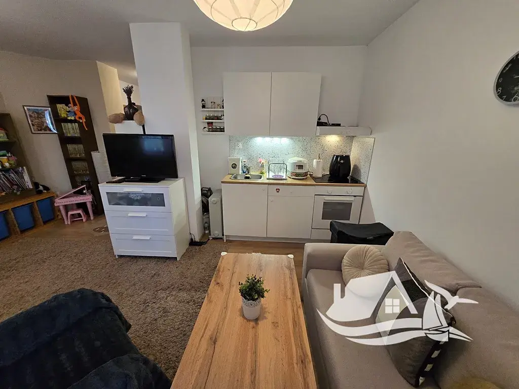 Dispozice: prostorný obytný pokoj s kuchyňským koutem, jídelní a spací část, koupelna se sprchou a toaletou