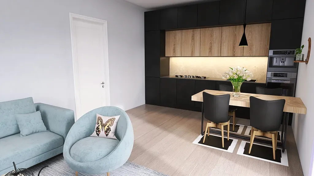 Dispozice bytů jsou řešeny moderním způsobem reflektujícím současný životní styl, kde dominantní obytný prostor zahrnuje jak obývací pokoj, jídelnu tak i kuchyň. Kuchyňská linka není součástí dodávky, je zde však připravený odtah pro napojení digestoře, rozvod vody a odpadu a jsou zde připravené volné kabelové vývody ukončené v instalačních krabicích. V obytných místnostech jsou na podlaze plovoucí laminátové podlahy, v koupelně a na WC je použita dlažba. Koupelny jsou vybaveny zařizovacími předměty (vana nebo sprchový kout, umyvadlo, toaleta, topné těleso). Téměř všechny byty disponují úložným prostorem (komora, tech.místnost, pračková nika) v rámci bytu. Vchod do bytu je zajištěn protipožárními, bezpečnostními dveřmi. Interiérové dveře jsou dřevěné, atypického rozměru s nadsvětlíkem.