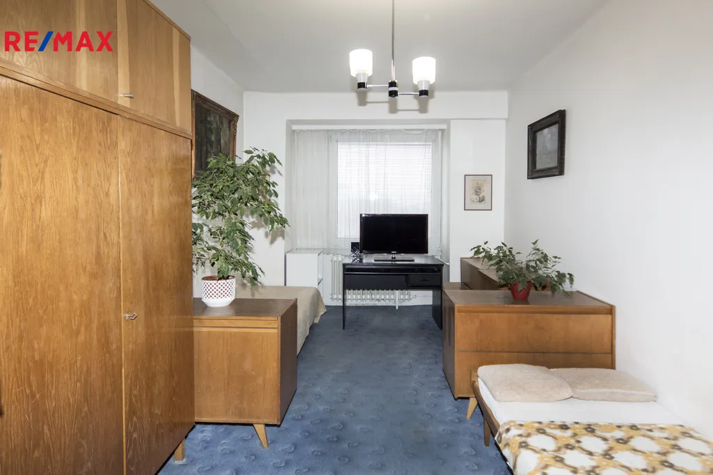 Nabízíme k prodeji příjemný byt 3+1 o celkové velikosti 73,7 m2 (z toho je 10 m2 balkon a 3 m2 sklepní kóje). Byt má k dispozici balkon orientovaný do zahrádky u domu, nachází se na třetím podlaží cihlového domu s výtahem. Byt je šikovně rozložen, ve vstupní chodbě jsou vestavěné úložné skříně, vstup do ložnice (9,8 m2), koupelny s vanou a WC zvlášť a dveře do obývacího pokoje (19,25 m2). Z obývacího pokoje lze vstoupit na trojúhelníkový balkon (10,3 m2), do kuchyňky a do další ložnice (15,7 m2). Okna vedou na JV (ložnice), SZ (obývák, kuchyně a ložnice) , balkon je orientován na SV. V pokojích jsou na podlaze původní dřevěné parkety, ostatní plochy jsou kryté dlažbou či linem. V bytě je zaveden plyn (sporák), topení a teplá voda je řešena centrálně, z výměníku vedle domu. K dispozici je sklepní koje v suterénu domu. Pro obyvatele domu je možné využít i společné sušárny, mandl či kočárkárnu.