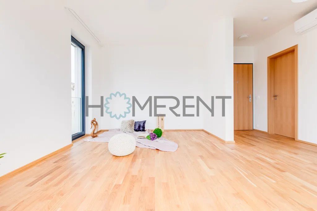Byt je nezařízený, velmi vkusně řešený a působí moderním a vzdušným dojmem. Díky velkým oknům je krásně prosvětlený po celý den. Dispozice nabízí obytný prostor s plně vybavenou kuchyňskou linkou, koupelnu s moderním sprchovým koutem a velkými zrcadly a vstupní chodbu. Komfort bydlení zvyšuje klimatizace. Vytápění je řešeno radiátory napojenými na ústřední topení v domě.