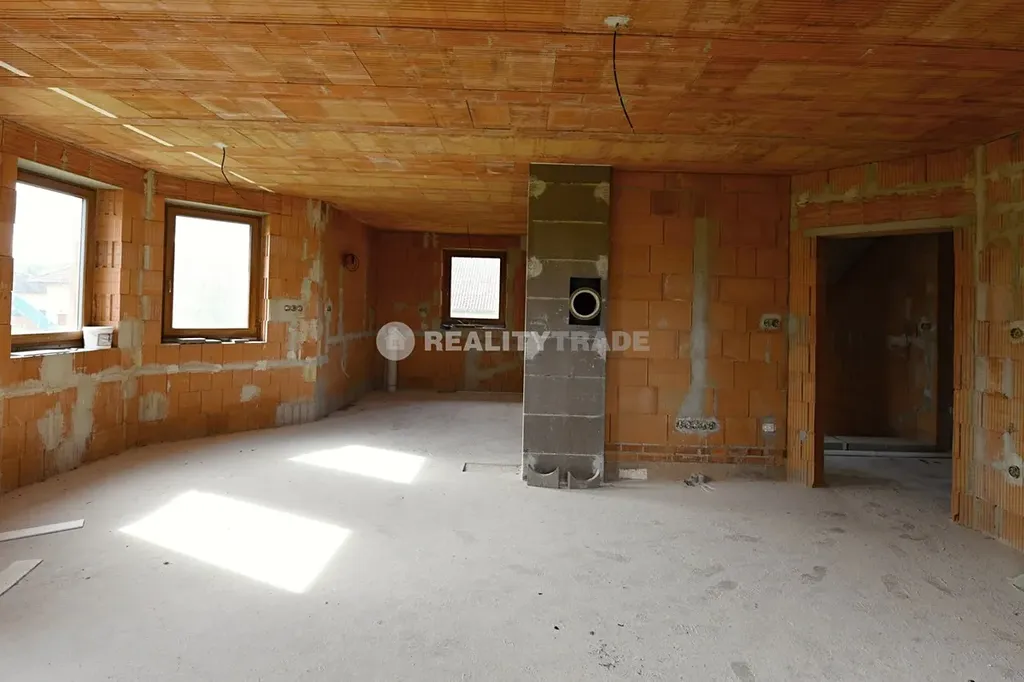 Základy jsou izolované, betonové. Objekt je cihlové konstrukce (Pichler Klimabloc Plan broušené). Stropy jsou tvořené keramickými stropními vložkami a keramicko-betonovými stropní nosníky vyztuženými svařovanou prostorovou výztuží (Miako). Střecha sedlová se záklopem, krytina pálená taška (Tondach bobrovka s glazurou), hromosvod, klempířské prvky v mědi. Plastová okna (Vekra trojsklo). Příprava na podlahové vytápění. Elektřina v mědi. Odpady v plastu, rozvod vody v plastu. Komín dvouděrový, vyvložkovaný (Rohr-Kamin). Rozvod pro centrální vysavač. Příprava na tepelné čerpadlo (vyvedené technologie). Dům je připravený na napojení na tyto sítě: elektřina 220/400 V, obecní kanalizace a vodovod. Půdorys 1PP, 1NP a 2NP je k dispozici na tomto webu v záložce "SOUBORY".