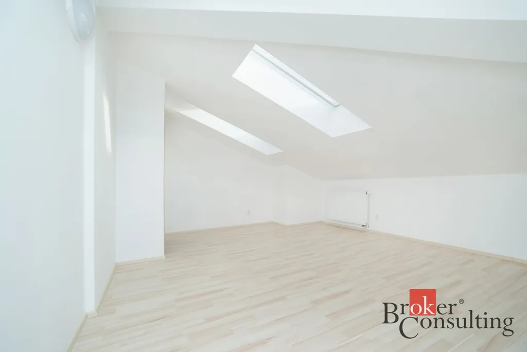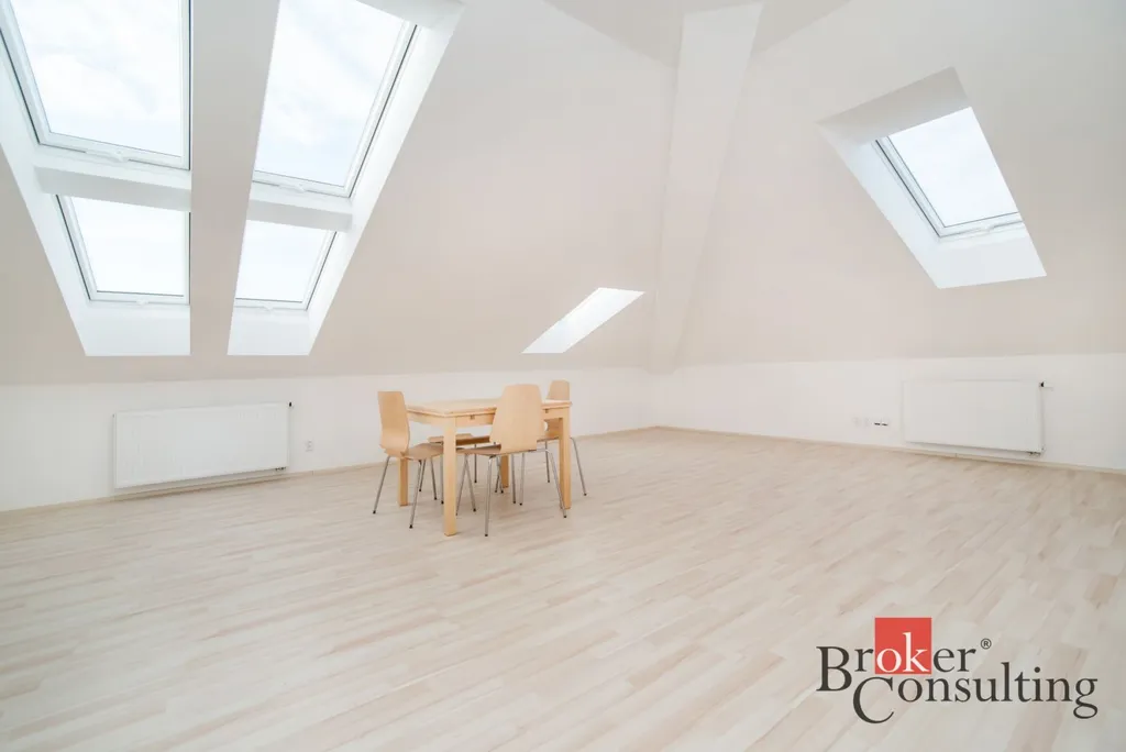 Nabízíme pronájem podkrovního bytu 2+KK v 6.patře v tiché ulici generála Selnera v Kladně. Podlahová plocha je 86,9m2 ale díky zkosené střeše uvádíme 66,9m2. Byt se skládá z menší ložnice, prostorového obývacího pokoje s kuchyňským koutem, koupelny s vanou a záchodem který je součástí koupelny - oddělený stěnou. Před bytem je prostorná komora/sklad. Parkovací stání před domem v ceně. Je vybaven kuchyňskou linkou s myčkou.