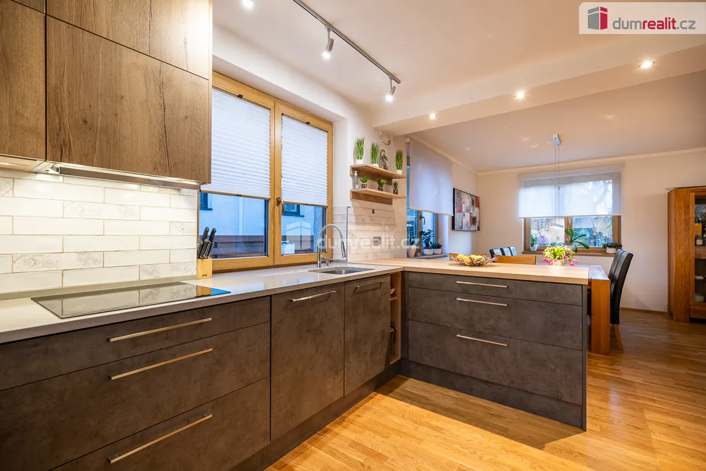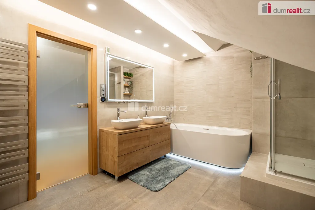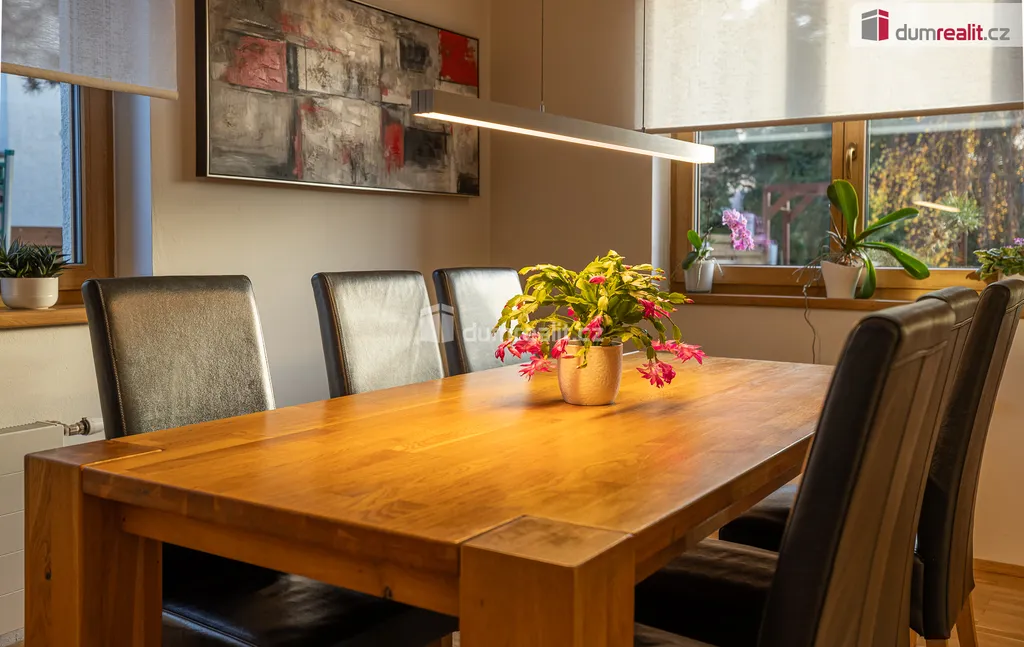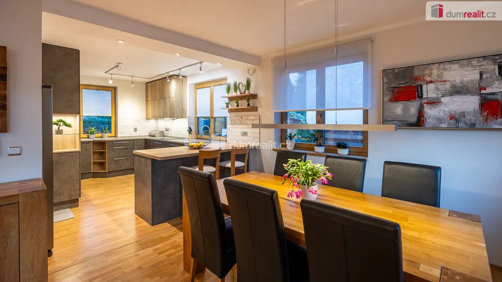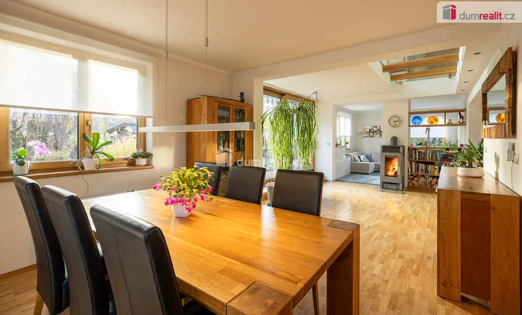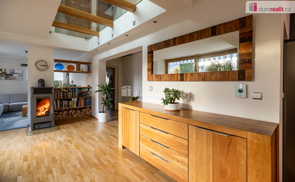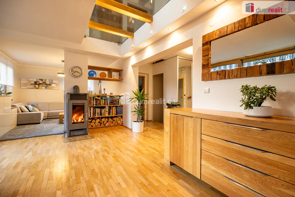 Dům procházel od roku 2012 kompletní rekonstrukcí, jejímž výsledkem je moderní, velmi útulný a nápaditý interiér, který poskytuje bohatý prostor pro rodinu. Zajímavé prvky, jako prosklená podlaha v patře, nebo dominantní hala, na kterou navazuje venkovní dřevěná terasa s bazénem, podtrhují úžasnou atmosféru této nemovitosti.