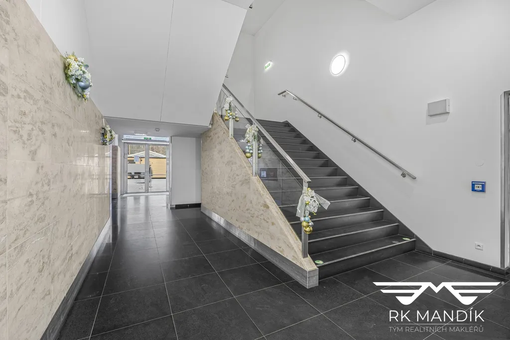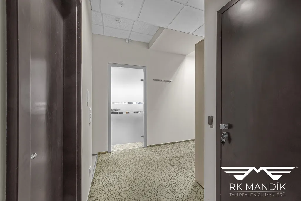 Prostory se nacházejí v 5. patře zrekonstruované administrativní budovy s výtahem a nepřetržitým provozem recepce s přístupem 24/7.