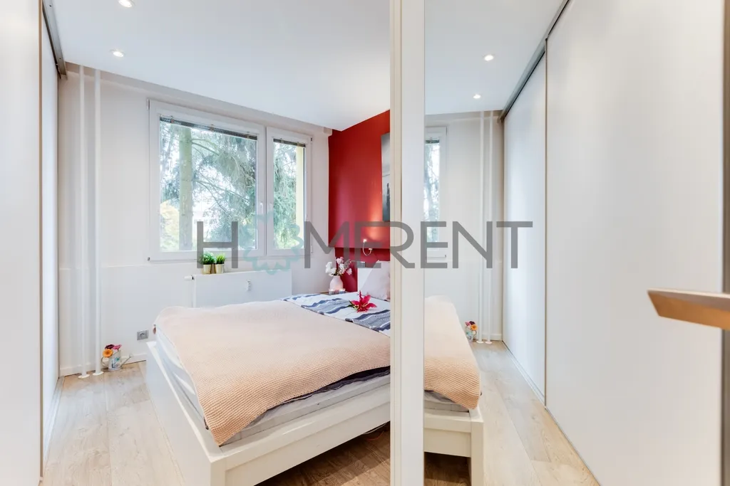 Nabízíme pronájem zařízeného bytu 3+kk v klidné lokalitě v panelovém domě (60m²) v přízemí. Dům se nachází 4 min. od autobusové zastávky Sídliště Pankrác a cca 7 min chůzi od metra Pankrác. V bytě jsou 3 místnosti - obývací pokoj s kuchyní a jídelnou, ložnice s manželskou postelí, druhá ložnice s rozkládacím gaučem, koupelna se sprchovým koutem a oddělené WC.