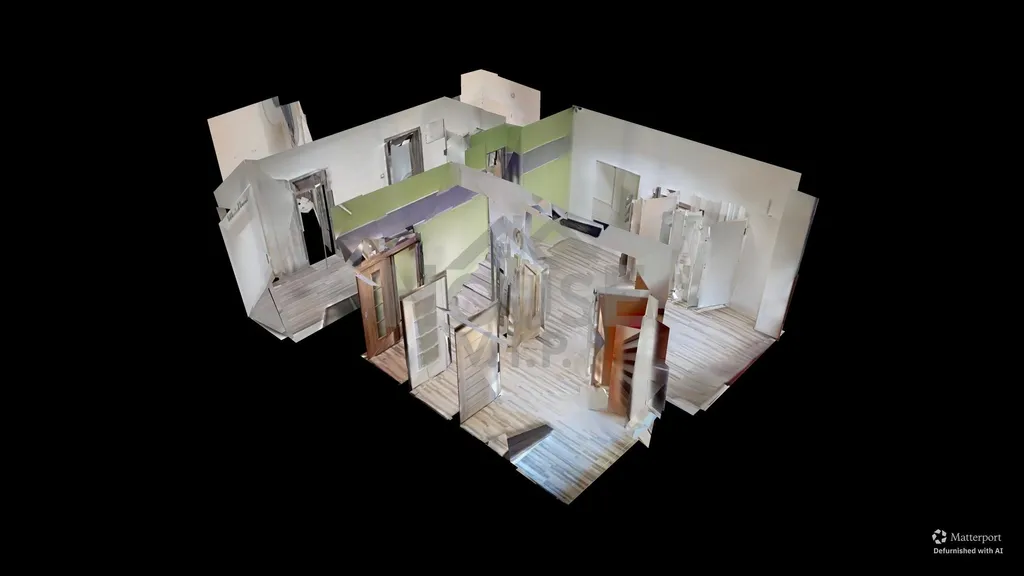 Z této části vede krátké schodiště do vyvýšené části, kde se nachází, předsíň, samostatná místnost s kuchyňkou, samostatné WC, oddělená koupelna se sprchovým koutem.