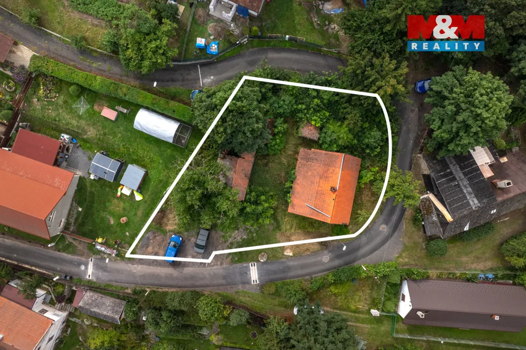 Na pozemku byl postaven dům z dřeva a cihel a je určen k celkové rekonstrukci, případně k nahrazení novou výstavbou dle vlastních představ. Na pozemku se nachází další zděný dům, který by šel přestavbou použít například na pergolu nebo letní kuchyň. Obě stavby mají střechu z historických tašek "Žihelek", které se vyráběly v nedaleké obci Žihle a jsou stále ceněné.