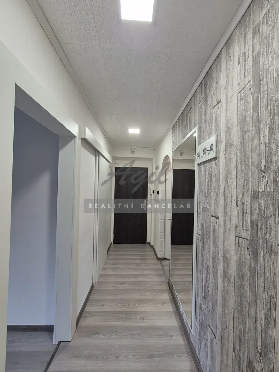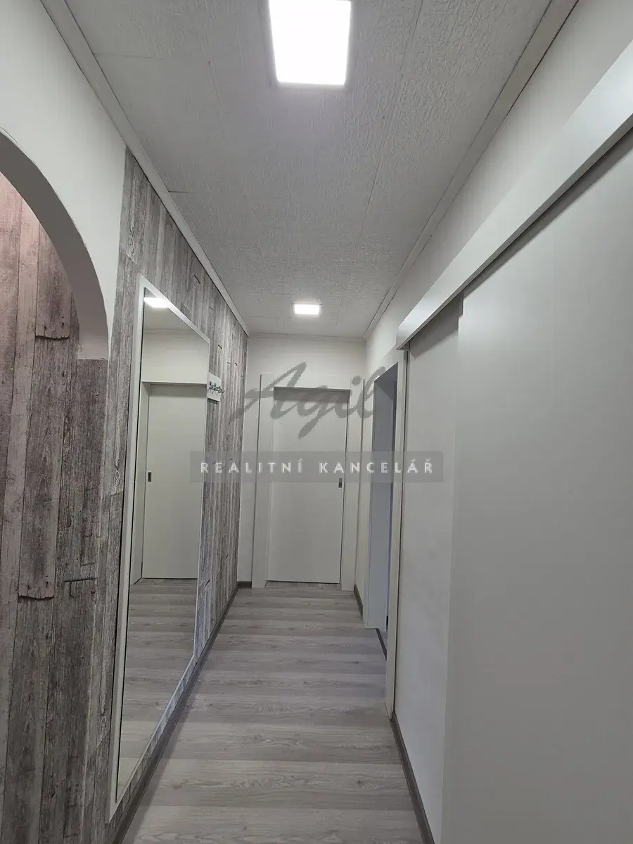 Předsíň, kuchyně, samostatné WC, koupelna, dětský pokoj, ložnice, obývací pokoj, 2x sklep.