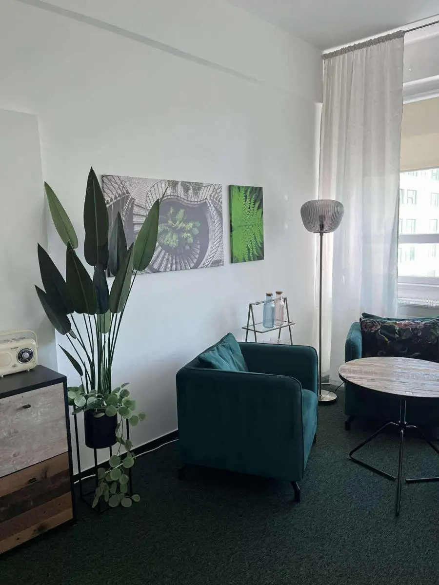 Kancelář je plně vybavena nábytkem, rychlovarnou konvicí, mobilní klimatizací, nábytkem. Kancelář je vhodná pro služby kouče, psychologa, v rámci seminářů a terapií lze využít kapacitu až pro 6 lidí poradce v oblasti vzdělávání, výuky jazyků, aj.