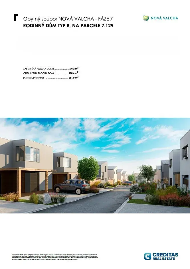 Dovolujeme si vám nabídnout rodinný dům 4+kk o celkové výměře 119 m², zahradou o výměře 422 m² a předzahrádkou 50 m², který je součástí nově vznikající již 7. etapy projektu Nová Valcha.