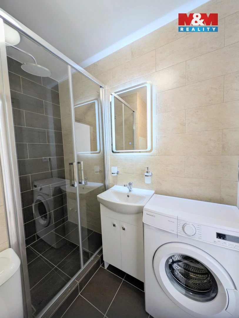 Dispozice bytu zahrnuje obývací pokoj s kuchyňským koutem, vybaveným lednicí s mrazákem. Koupelna je osazena sprchovým koutem, toaletou a pračkou. V ložnici jsou dvě lůžka s úložným prostorem. K bytu náleží sklepní kóje a na patře je k dispozici společná lodžie. Vytápění je zajištěno centrálním teplovodním systémem z plynové kotelny. V okolí domu je dostatek parkovacích míst. Nájemné činí 10.800 Kč + zálohy na služby 2.950 Kč ( bude upřesněno podle počtu osob). Elektřinu a plyn na vaření si hradí nájemce. Vratná kauce 20.000,- Kč, provize RK 11.000,- Kč vč. DPH. Byt je nekuřácký a je určen pro spolehlivého nájemce se zájmem o dlouhodobý pronájem. Majitel si vyhrazuje právo výběru nejvhodnějšího zájemce.