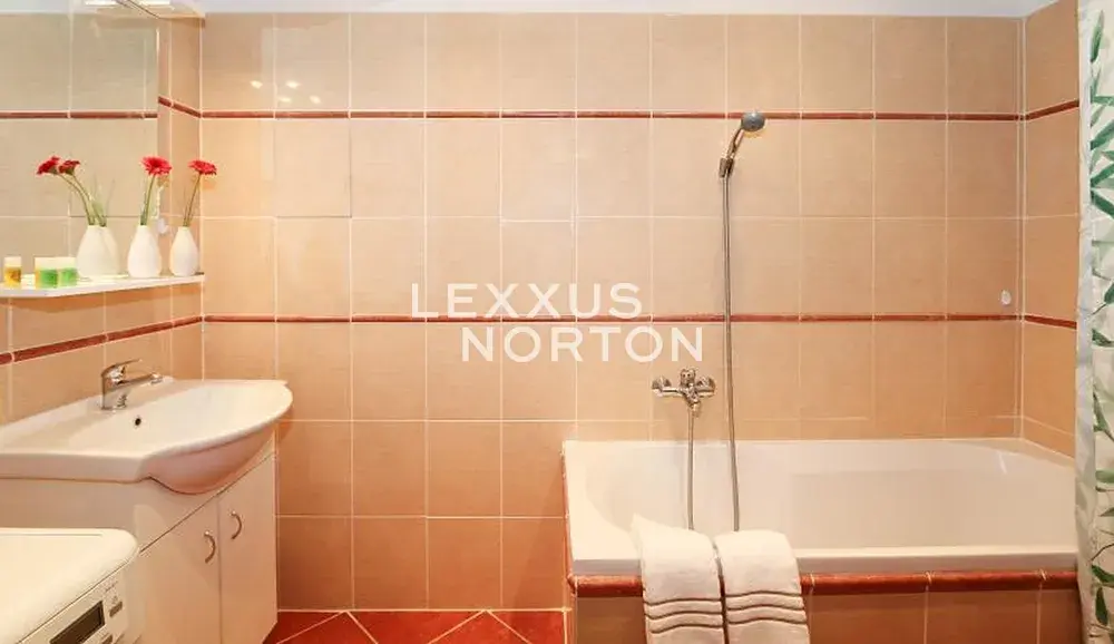 Byt je zařízený a součástí vybavení je pračka, sušička, klimatizace, kuchyňské spotřebiče, televize, pracovní stůl s židlí, jídelní set, sedací souprava, konferenční a televizní stolek, komoda a postel.